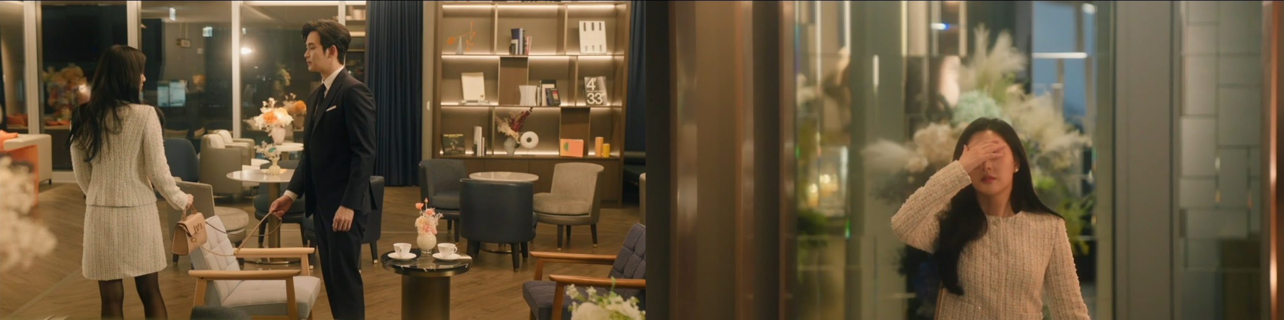 누명을 벗은 현우는 다시 회사에 복직을 하고, 해인은 그런 현우가 불편해서 따로 만나 사퇴를 권고합니다. 모진 말을 내뱉고 자리를 뜨는 순간 핸드백 스트링이 의자 손잡이에 걸린 것을 백현우가 붙잡는 것으로 오해해서 '질척대지 말라'고 또다시 하찮은 말티즈 탑재하는 홍해인. 상황파악 후 자리를 피하고 쥐구멍에 숨고 싶은 홍해인.. 15회 가장 사랑스러운 장면이 아니었을까 싶습니다.