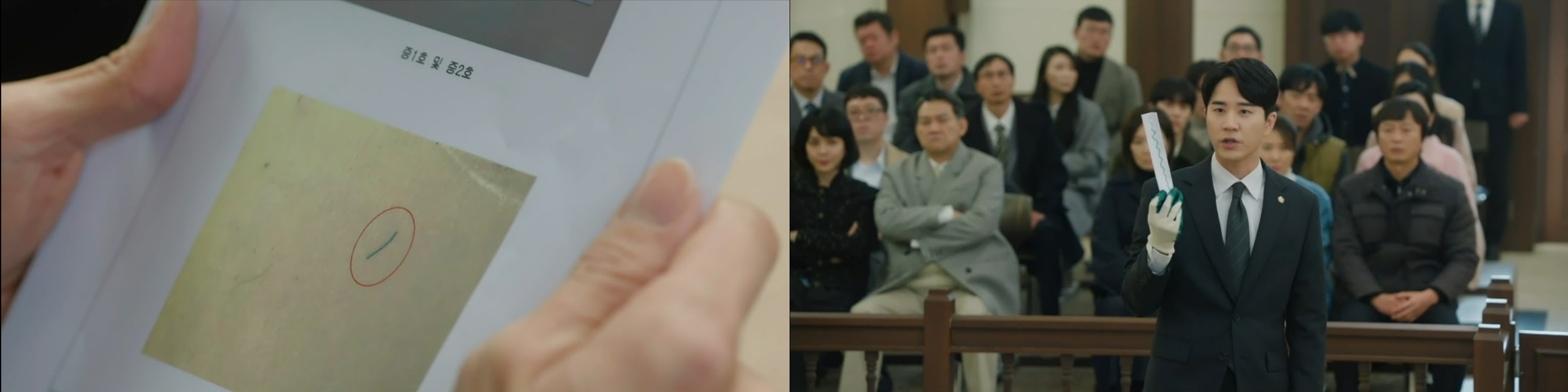 예고편에서 나온대로, 해인이 회복하는 사이 그녀의 수첩을 윤은성이 손에 넣고 증거인멸을 합니다. 하지만 윤은성이 자리를 뜨고 얼마지 않아 하늘에서는 함박눈이 내리고, 해인의 다이어리 겉표지가 가죽이었기 때문에 가장자리를 제외한 대부분이 살아남게 되었습니다.
