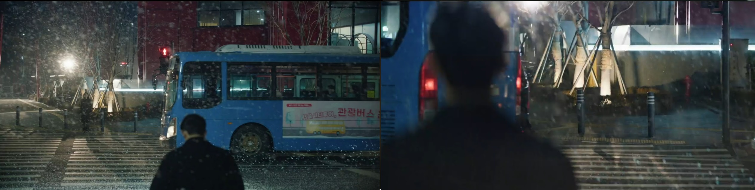 아니 작가님.. 피디님.. 이게 웬 쌍팔년도 화면전환입니까?? 드디어 서로의 존재를 알아차린 두 남녀가 횡단보도를 사이에 두고 마주합니다. 신호를 기다리는 사이 버스 한 대가 천천히 그 사이를 지나가고, 버스가 떠난 이후 사랑하는 그녀는 감쪽같이 사라집니다!!!!! 이건 좀 너무 무리수 아니신가요? 게다가..